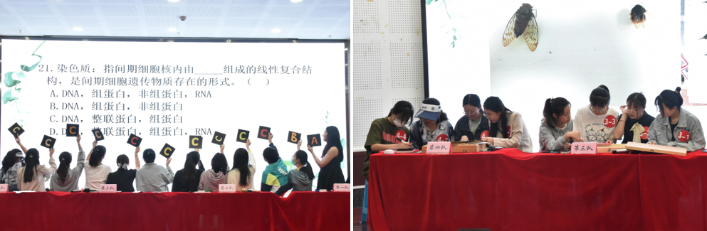 整合学科资源,强化育人成效。搭建面向全校学子的学科竞赛平台,围绕“妙趣横生探生命,群英争霸展芳华”主题,开展“林奈杯”生物知识竞赛,以赛事为契机促进青年学子生物学文化交流。将复杂的生物学理论知识融入日常生活实践,用青年人喜闻乐见的方式和创意设计问答和抢答环节,以赛促学的形式极大激发了广大青年学以致用、探索生命奥秘的积极性,有效拓宽了青年学子生命科学视野格局,营造了浓厚的“博物、致知”学习氛围。