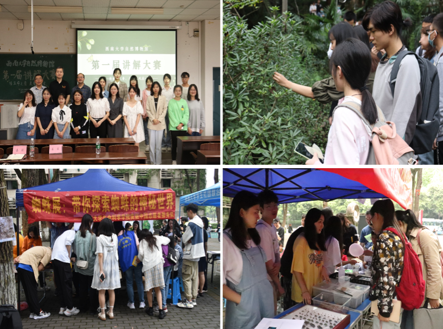 普及学科知识,弘扬科学精神。以世界博物馆日为契机,开展“传生命之音,展青春风采”自然博物馆讲解大赛,“讲赛并举”的形式助推青年学子沉浸式体验自然的魅力、生物的魅力,让学院自然博物馆成为面向全校的科普殿堂。将生态文明思想与专业实践相结合,打造“植言植语”校园植物鉴赏活动,助力青年学子从认识校园“一草一木”做起,牢固树立“爱校护校”意识,积极响应“双碳”战略号召。举办遇见“蜘蛛侠”蜘蛛科普展活动,通过展示蜘蛛标本、图片,设计“蜘蛛吐丝”、“天罗地网”、“蜘蛛报数”等小游戏普及蜘蛛科学知识,更好帮助青年学子以科学态度认识蜘蛛、崇敬自然。
