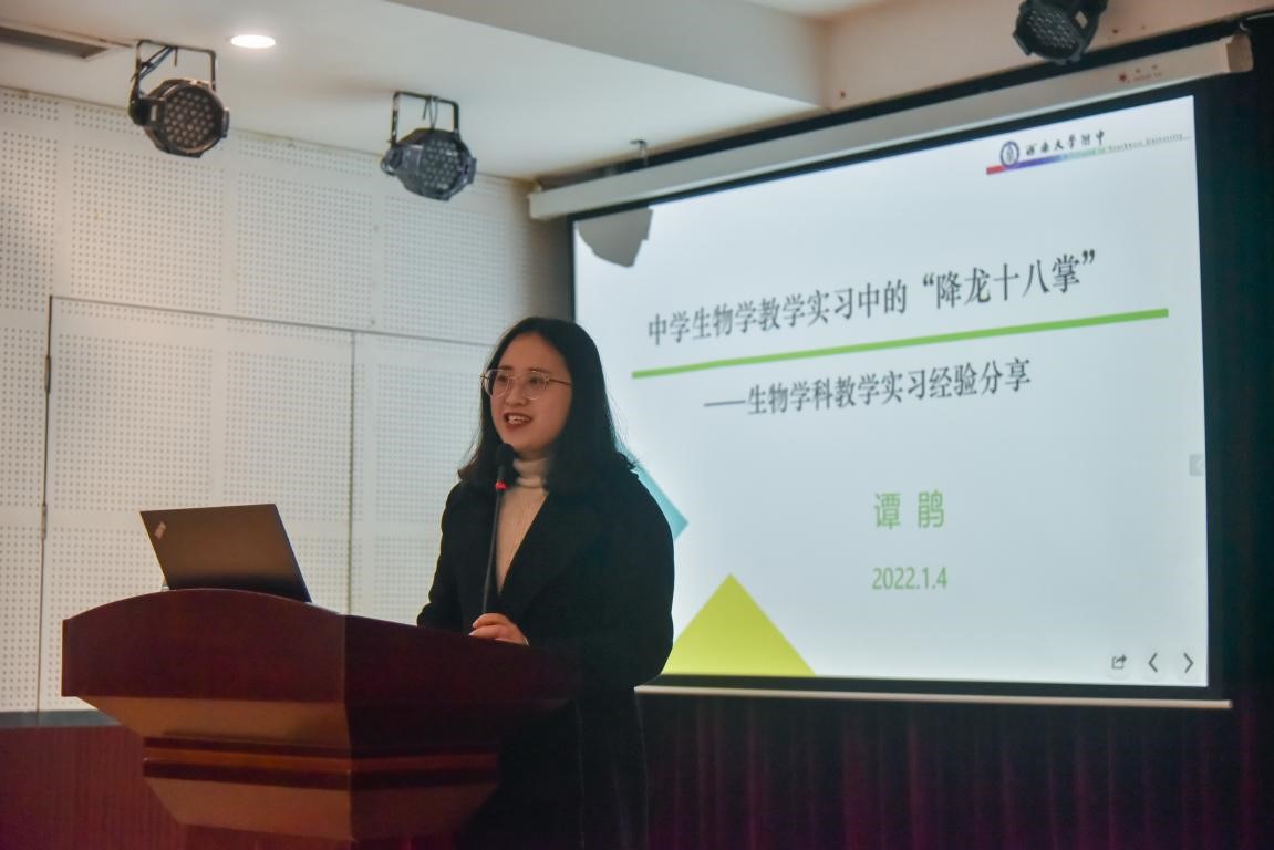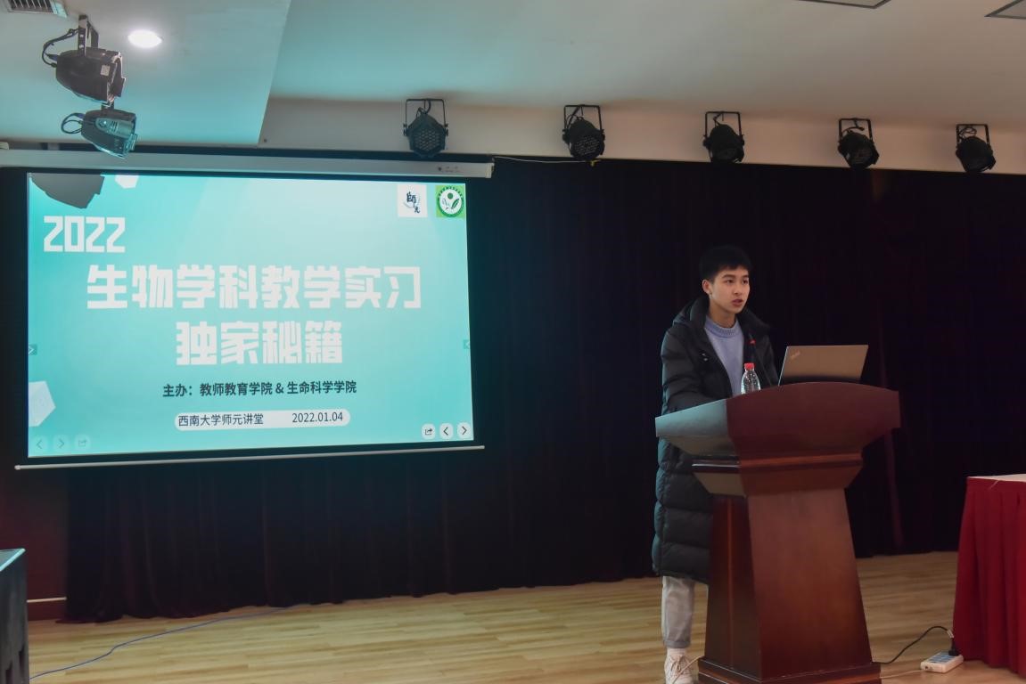 为进一步做好2019级生物科学专业公费师范生的教育实习工作,2022年1月4日下午15:00,受西南大学教师教育学院实习办邀请,西南大学附属中学教师蒙静、谭鹃老师在师元讲堂为PA视讯2019级全体师范生进行实习前培训。教师教育学院学科生物2021级全体教育硕士也参加了本次培训。