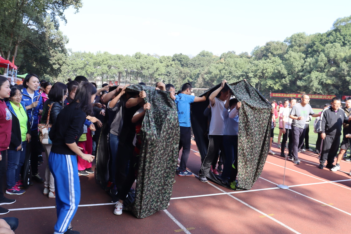 同时,教工组的比赛也在第一运动场如火如荼地进行着。老师们活力不减,赛场上处处可见他们矫健灵活的身影。一颗颗晶莹的汗水,一个个温暖的笑容,在竞赛中,他们挥洒激情。运动会不仅是智慧和体力的角逐,还是团队和协作的完美比拼。从滚铁环接力、无敌风火轮、智传呼啦圈、螃蟹接力跑、毛毛虫接力等集体项目中,我们看到了老师们的拼劲与冲劲。