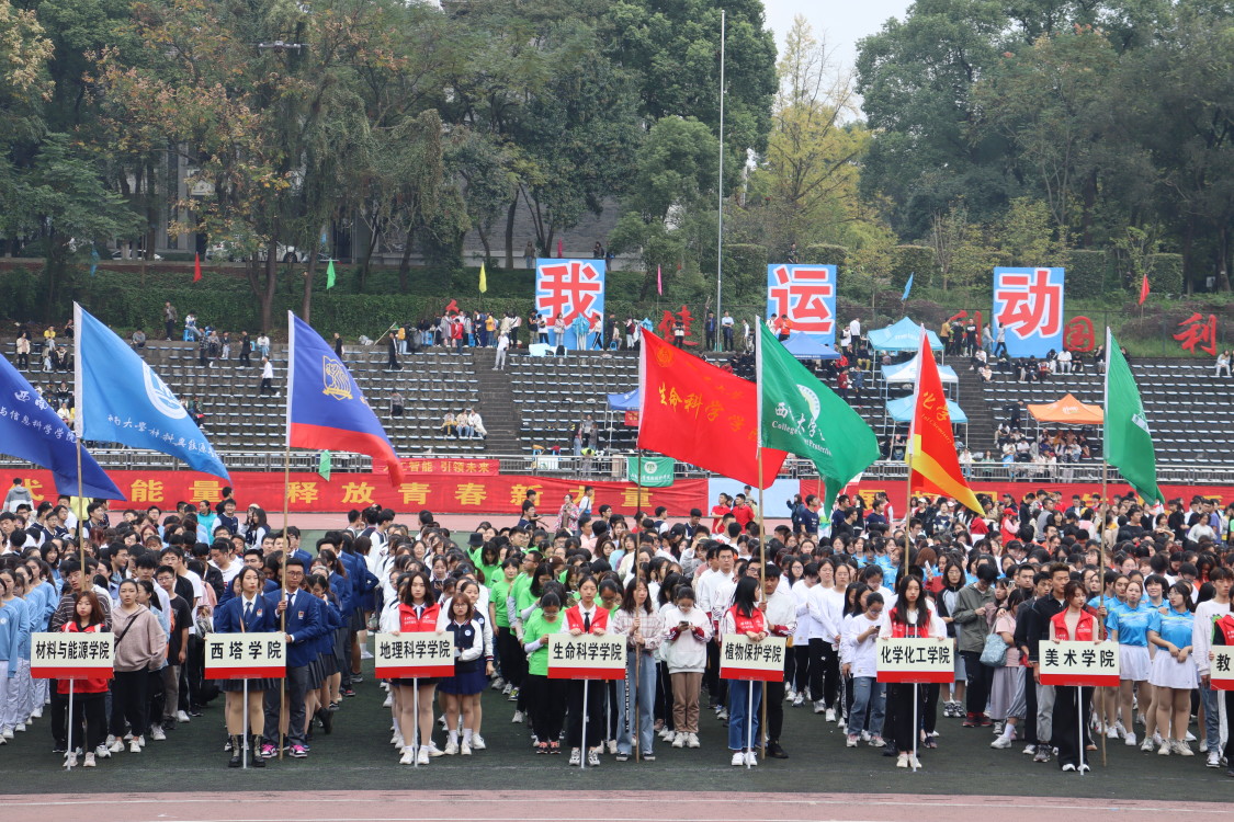 在开幕式上,同学们身穿统一的浅绿色服装,迈着整齐的步伐,喊着响亮的口号——缙云苍苍,生科无双!气势昂扬地走过主席台,他们脸上洋溢着青春希望和蓬勃的朝气,展示了独特自我风采和学院的精神面貌。