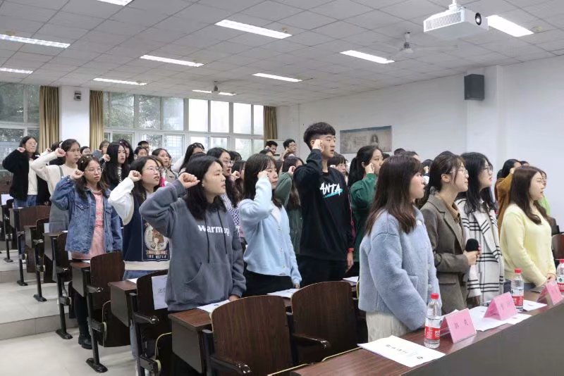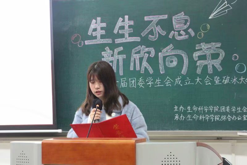 伴随着热烈的掌声,首先进行的是PA视讯第十六届团委学生会成立大会。团委副书记邹爽首先宣读团委学生会全体成员名单。随后干部代表江虹霖进行发言,讲述了在她的心中作为部长应有的责任担当和榜样力量。“我属于西大,属于生科院,属于团委学生会。”干事代表蒋欣芮的发言道出了团委学生会带给她的那份难忘的归属感。执行主席曹玲在带领全体团委学生会成员宣誓之后进行了致辞,为团委学生会今后的发展做出了规划,提出了期望。接下来,综合办公室负责人林心怡为大家讲解了团委学生会章程及工作注意事项。大会的最后,全体成员面对着团旗,奏唱了团歌。