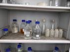无人使用的操作台长期通电,溶液瓶上无标签