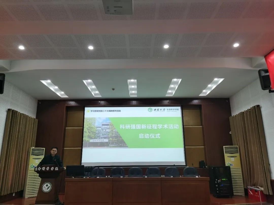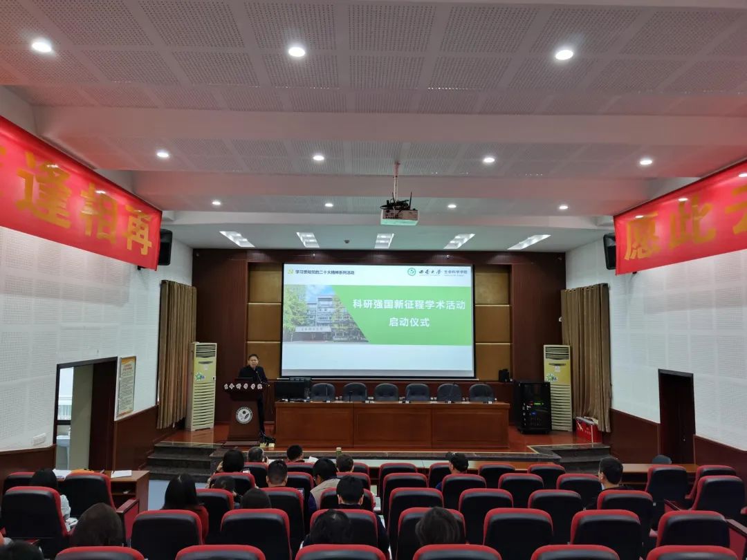党的二十大报告将教育、科技、人才“三位一体”统筹安排、一体部署,明确了科教兴国战略在新时代的科学内涵和使命任务。为深入贯彻落实党的二十大报告中关于“实施科教兴国战略,强化现代化建设人才支撑”重要精神,发挥高校在科技创新中的主力作用,围绕生物学“双一流”学科建设中心任务,推动和加强有组织科研,大力提升科研创新能力,营造浓厚创新氛围。3月31日,学院在白南楼二楼多功能厅举行“科研强国新征程”学术活动启动仪式。学院领导班子成员、全体教师参加活动。活动由副院长廖志华主持。