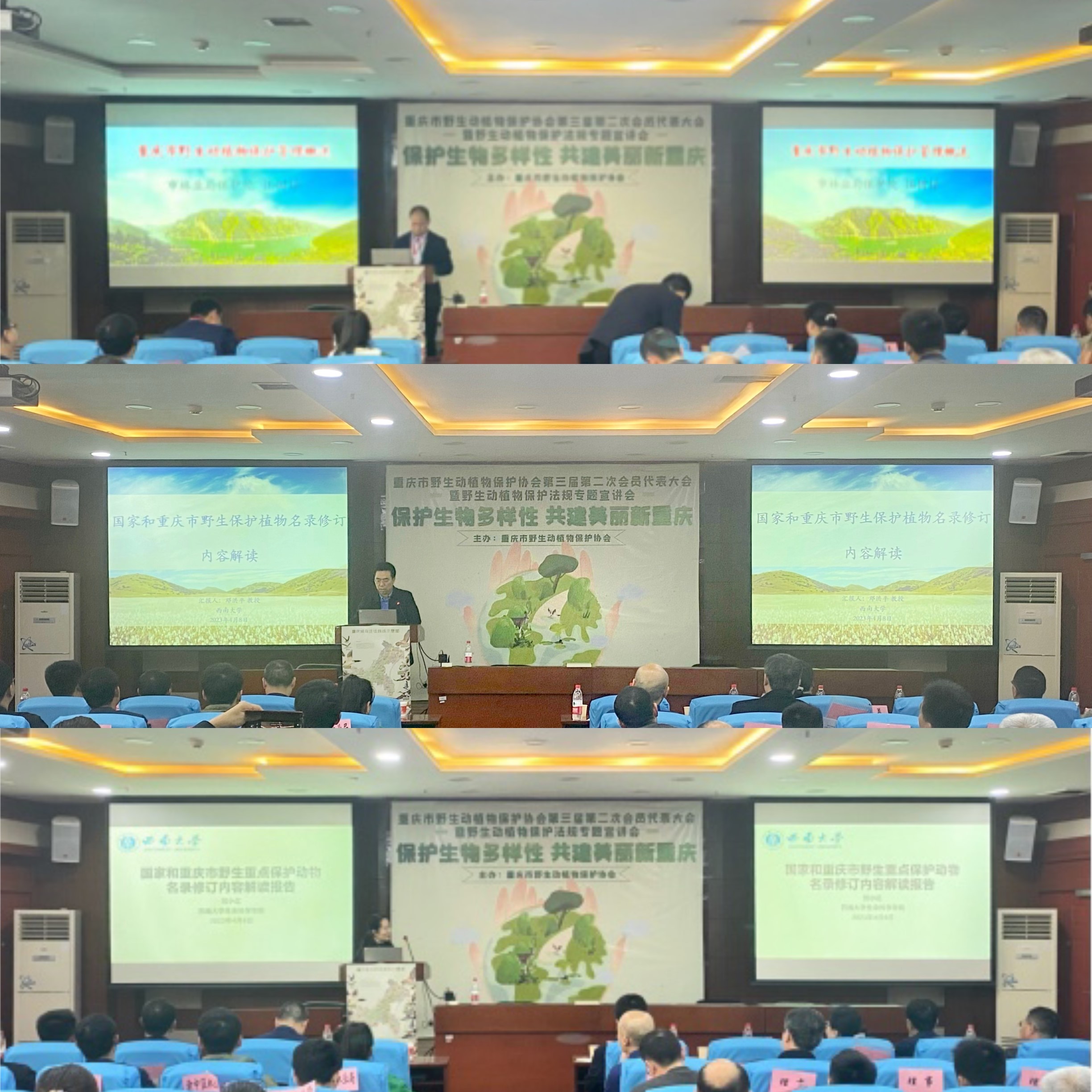 4月7-8日,由重庆市野生动植物保护协会(下文简称“协会”)主办,西南大学生物多样性保护与利用研究中心承办的重庆市野生动植物保护协会第三届第二次会员代表大会暨野生动植物保护法规专题宣讲会在学校顺利召开。重庆市人民政府参事张洪,重庆市林业局保护处处长汪树祥,西南大学PA视讯党委书记蒋寒,重庆市野生动物保护协会会长、西南大学生物多样性保护与利用研究中心邓洪平教授,重庆市野生动植物保护协会副会长姚勇、王一富、危骞同志出席会议。国家林业和草原局野生动植物保护司处长温战强同志以线上形式参会并做报告。来自全市38个区县林业生物多样性保护部门,全市所有国家级自然保护区管理部门,部分高校和动植物保护团体等会员单位的130余名代表参加会议。会议由汪树祥和邓洪平主持。