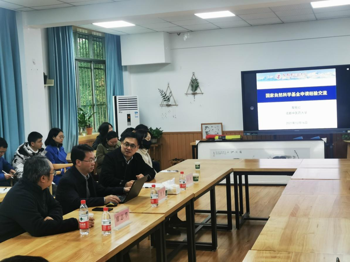 2021年12月16日,成都中医药大学副校长黎胜红首席教授在学院223会议室受邀为学院教师做了国家自然科学基金项目申报培训。即将申请基金项目的PA视讯、药学院教师60余人参加会议。会议由学院党委书记蒋寒主持。