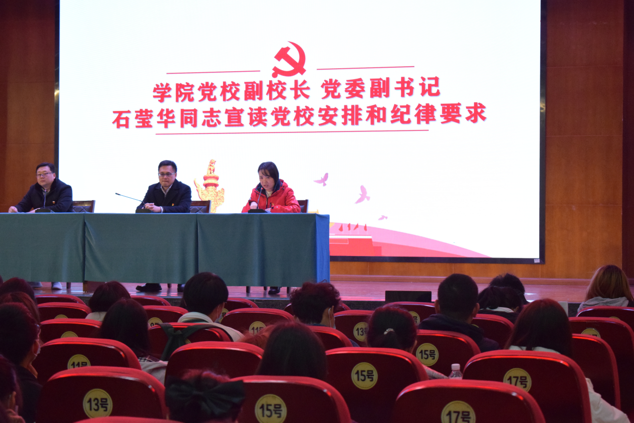 接下来石莹华同志宣读了党校安排和纪律要求,通过对党校的课程安排和结业考核标准的介绍,强调从一开始便以党员的标准要求自己是成为党员的第一步。在学员代表白欣怡同学的发言中,我们看到每一位学员对党的向往之情和勇于承诺的信心,希望学员们都能通过学习,认识党,拥护党,坚信党,锐意进取,开拓创新。