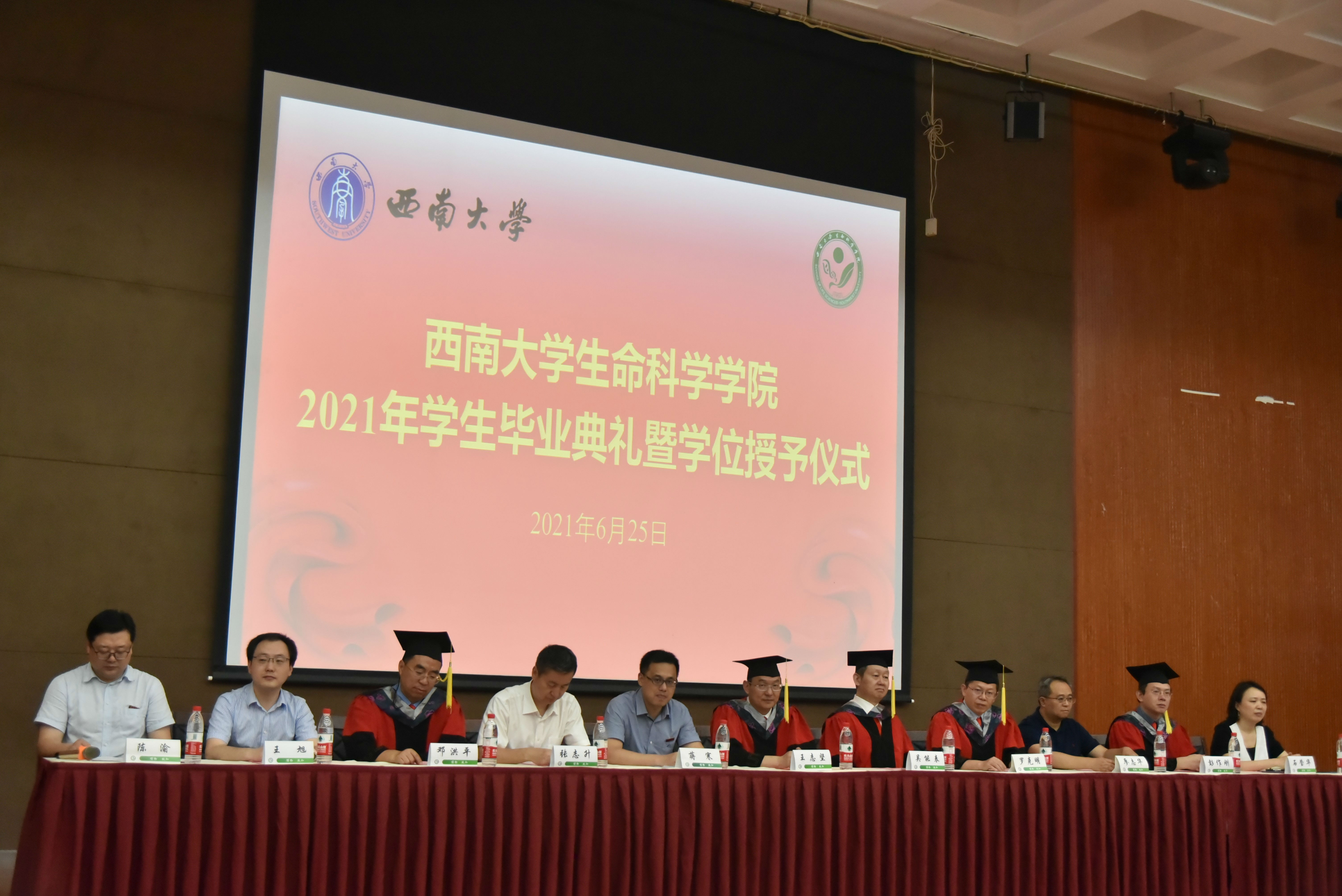 罗克明院长在典礼最后的讲话中指出,再过几天,就是中国共产党的百岁华诞,也是大家离开母校,开辟属于自己广阔天地的日子,大家即将登上属于自己人生旅程的崭新舞台,迎来属于自己人生的“大事变”。他强调,与今后的漫长旅程相比,大家此前的学习生活更像是一出序幕,剧是必须从序幕开始,但序幕还不是高潮,同学们要时刻保持积极向上的心态,一是要热爱祖国、懂得感恩,永怀报国之心,把自己的理想同祖国的前途、把自己的人生同民族的命运紧密联系在一起;二是要勇于奉献、敢于担当,扛起时代重任,以永不懈怠的精神状态和一往无前的奋斗姿态,担负起时代赋予的重任;三是要努力奋进、懂得坚持,不断突破自己,做一个永不停歇的攀登者,把握机遇,就能破茧成蝶,看到人生最美的风景。愿毕业生同学们涌入人海,继续乘风破浪,即使没有人再催打卡,也要早点回家,生科院永远是大家温暖的港湾。祝愿同学们鹏程万里、事业腾达!祝愿西南大学事业蒸蒸日上,明天更加美好!