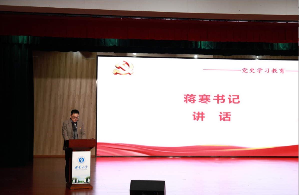 学院党委书记蒋寒针对进一步开展好党史学习教育进行了专门部署。他提出要进一步深刻认识开展党史学习教育的重大意义,准确把握好学习的目标要求和重点内容,严格落实党史学习教育的各项具体安排。他强调全体党员师生要将党史学习教育和学院实际、日常工作相结合,坚持学干结合、以学促干,切实把学习成效转化为干事创业的不竭动力,以高质量的学习教育成效促进学院事业高质量发展,确保学院“十四五”开好局、起好步。
