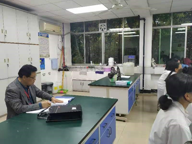认证专家在学院中学实验教学能力训练实验室与师生交谈