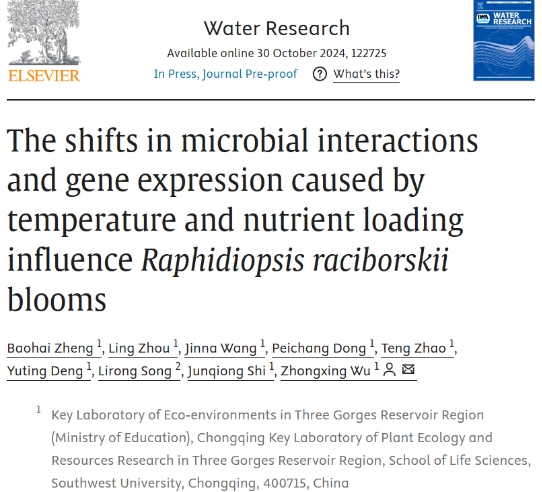 西南大学PA视讯吴忠兴教授课题组在WATER RESEARCH(中科院一区Top,IF=11.4)在线发表了题为The shifts in microbial interactions and gene expression caused by temperature and nutrient loading influenceRaphidiopsis raciborskiiblooms的研究论文,本文在不同温度和磷浓度条件下进行了微宇宙模拟实验,利用微生物行为生态模型、WGCNA和网络分析等多元化的分析方法,探讨了拟柱孢藻藻华发生期间蓝藻与细菌之间的相互作用,揭示了蓝藻与非蓝藻细菌之间以利他主义为主导的复杂互动模式和微生物在应对压力时采用的自我调节策略。本研究为水生环境管理和生态恢复提供了有力的理论支持。