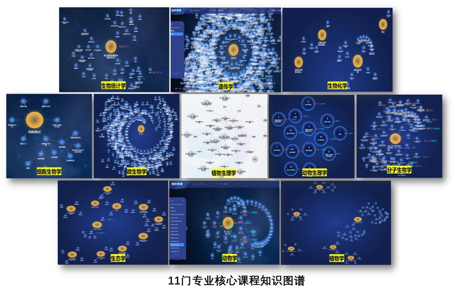 目前,生物科学专业的11门核心课程(动物学、植物学、生物化学、遗传学、微生物学、分子生物学、植物生理学、动物生理学、细胞生物学、生态学、生物统计学)已构建1136个知识点,所有课程均建立了课程知识图谱,形成对学生整体和个体知识点掌握情况的了解和可视化分析,助力教学决策的同时,也为全面推动专业核心课程群及智慧专业图谱建设奠定了坚实基础。目前正在进行课程智能体(AI助教)的训练,包括精准化教育资源适配与推送,AI学情分析,AI自测,结合通过DeepSeek、教育垂直类汇雅大模型构建课程专属知识库等。