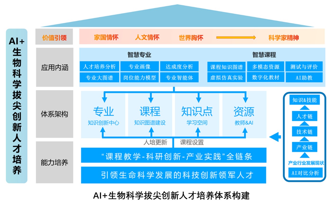 学院将继续完善智慧课程群和智慧专业的建设,以人工智能为引领,不断创新人才培养模式和教学实践方法,在生物科学核心课程教学的基础上,围绕生物资源开发与利用、种质创制、生物与医药等前领域,培养学生跨学科思维和科研创新能力。加强与华大基因、金斯瑞生物科技等行业龙头企业,中国科学院遗传所、崖州湾国家实验室等一流科研院所的合作与交流,共同探索人工智能在拔尖创新人才培养方面的应用场景和方法。打造一个高度集成、功能全面的教育生态系统,全面覆盖在线学习、智能辅导、虚拟实验、远程协作等,深入整合教学、科研、产业等多维度资源,引领生物科学领域知识与技能的深度融合与创新发展。